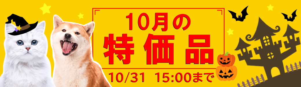 今月は「日本ペットフード」「ネスレ」「ユニ・チャーム」「いなばペットフード」「ペッツルート」「コーチョー」「三晃商会」がMAX 10%OFF!