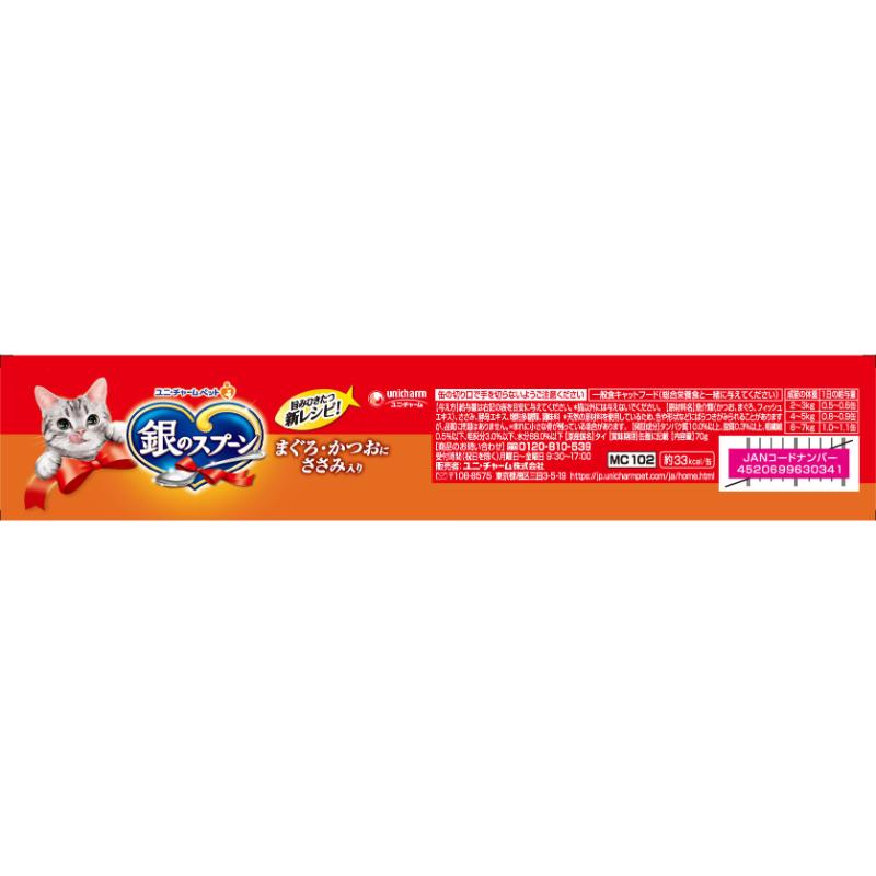[ユニ・チャーム]銀のスプーン 缶 まぐろ・かつおにささみ入り 70g