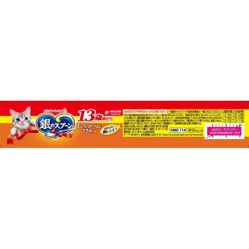 [ユニ・チャーム]銀のスプーン 缶 13歳頃から まぐろ・かつおにささみ入り 70g