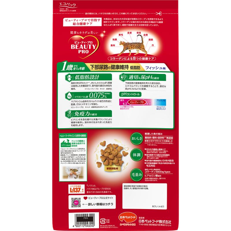 [日本ペットフード]ビューティープロ キャット 下部尿路の健康維持 低脂肪 1歳から フィッシュ味 1.4kg(280g×5)【11月特価】