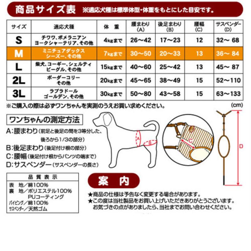 <腰まわり>30~50cm <後足まわり>20~33cm <腰幅>13cm<サスペンダーの長さ>36~84cm