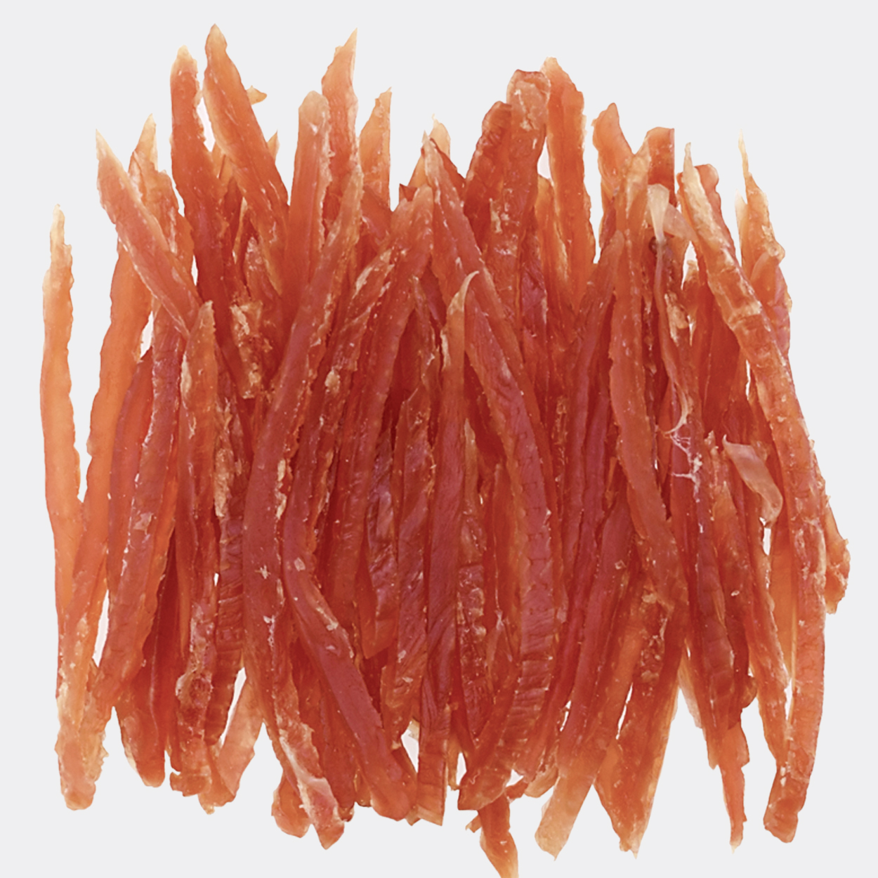 | 素材 | <原材料> 鶏ササミ、玄米麹粉末、グリセリン、プロピレングリコール、リン酸塩(Na)、酸化防止剤(亜硫酸Na、V.E)、発色剤(亜硝酸Na) <保証成分> 粗たん白質41.0%以上、粗脂肪0.5%以上、粗繊維0.5%以下、粗灰分5.0%以下、水分40.0%以下 エネルギー:254kcal/100g |