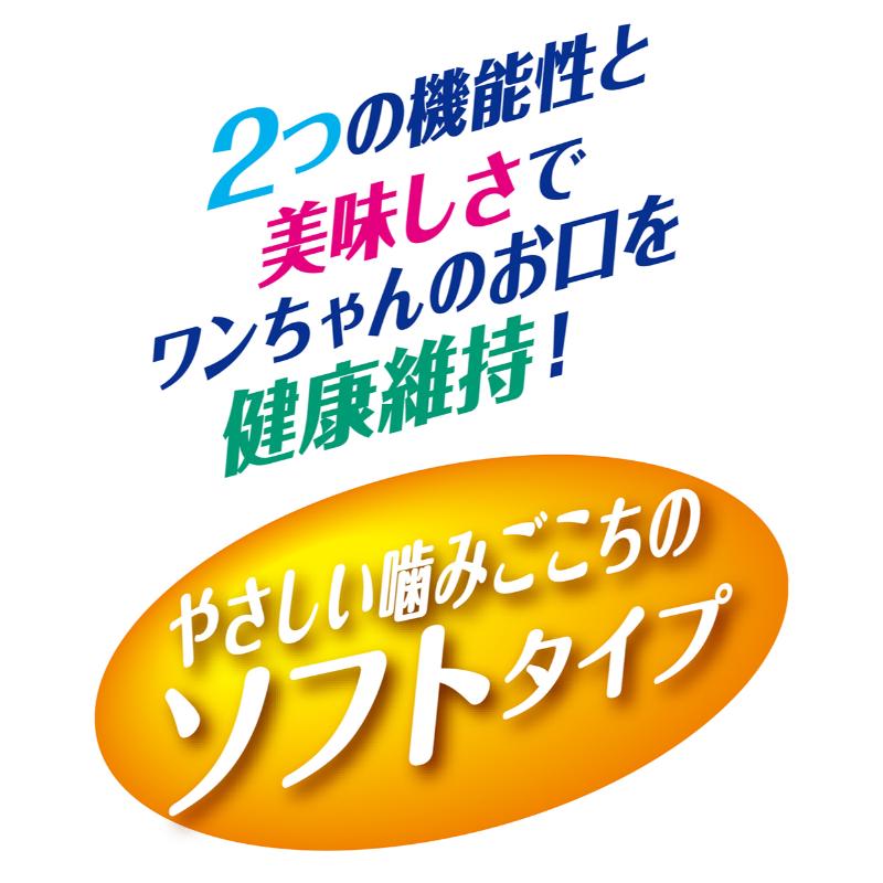 お口の中を爽快に(エリスリトール・りんごポリフェノール)、息リフレッシュ(クロロフィル・ミント)、歯の健康に(カルシウム・ビタミンD)の3つの機能でワンちゃんのエチケットに。ほんのりミルク風味。