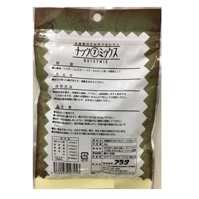 [アラタ]乳酸菌付きおやつセレクト ナッツ7ミックス 60g