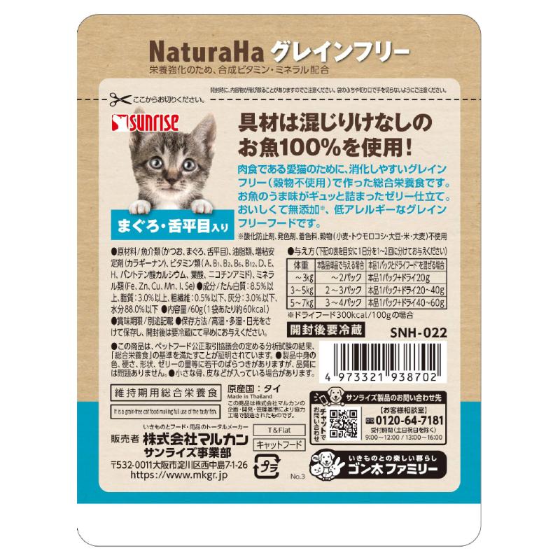 [マルカン サンライズ]ナチュラハ グレインフリー まぐろ・舌平目入り 60g