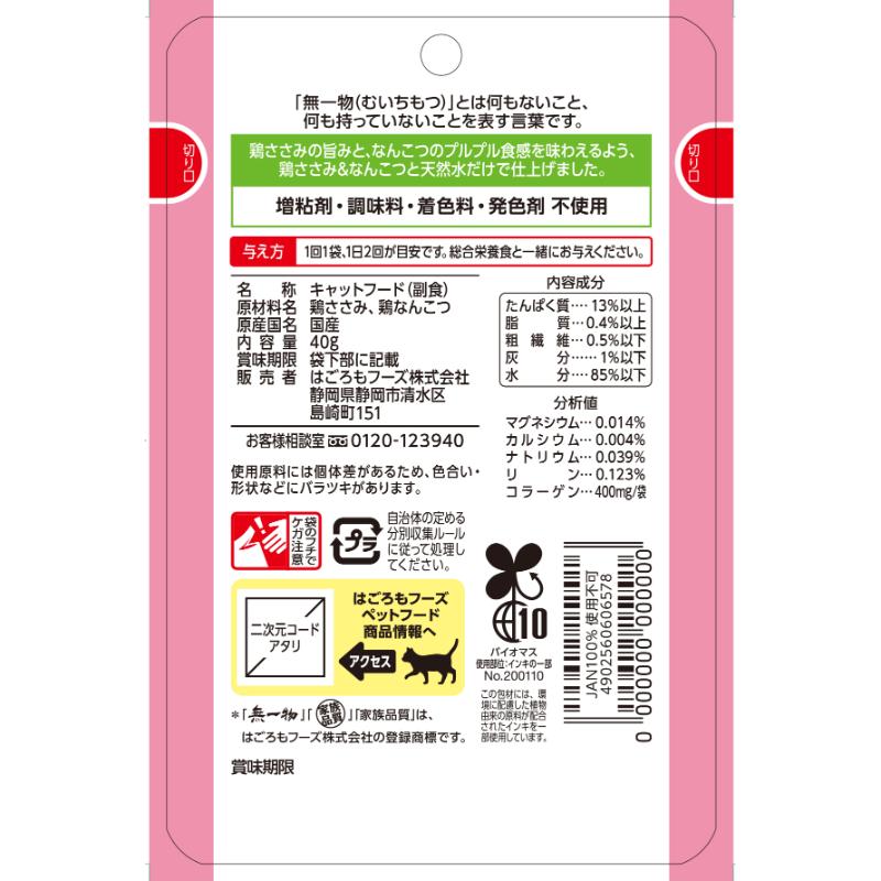 [はごろもフーズ]無一物パウチ 鶏ささみ&なんこつ 40g