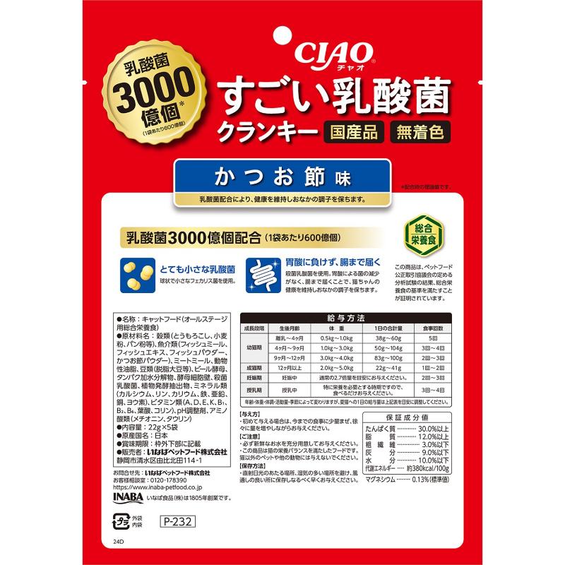 [いなばペットフード]CIAO すごい乳酸菌クランキー かつお節味 22g×5袋 P-232