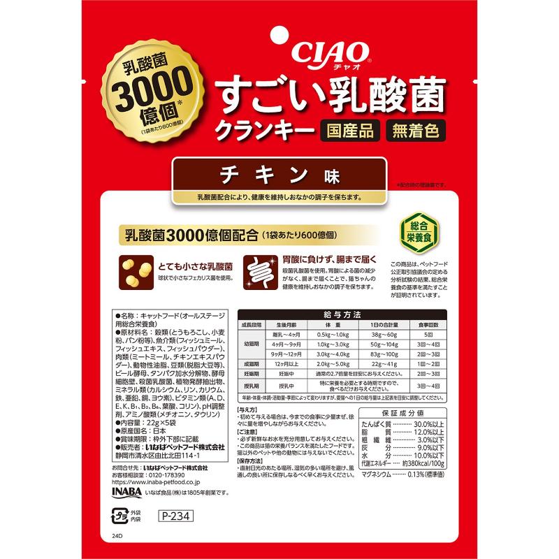 [いなばペットフード] CIAO すごい乳酸菌クランキー チキン味 22g×5袋 P-234