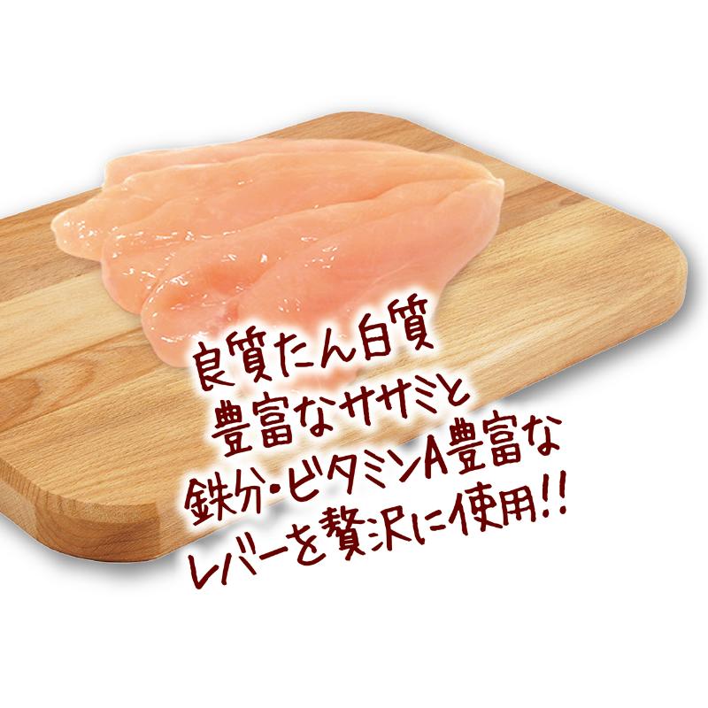 良質たん白質豊富なササミと鉄分・ビタミンA豊富なレバーを贅沢に使用!食品素材のみで仕上げました。