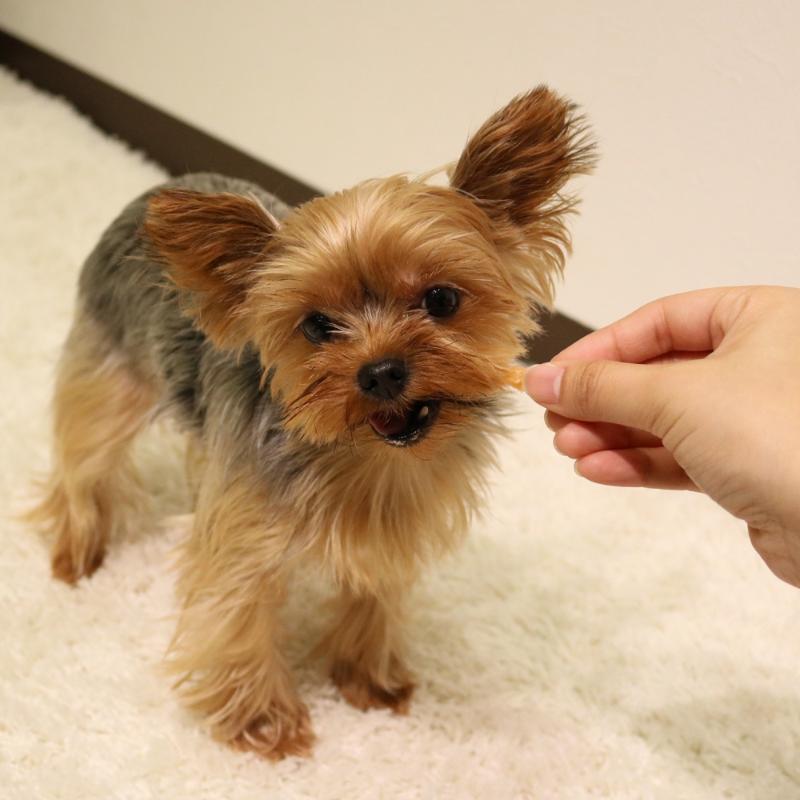 ・犬の習性や性格、食べ方によっては、のどに詰まらせたりする恐れがありますので、適切な大きさにして与えてください。
