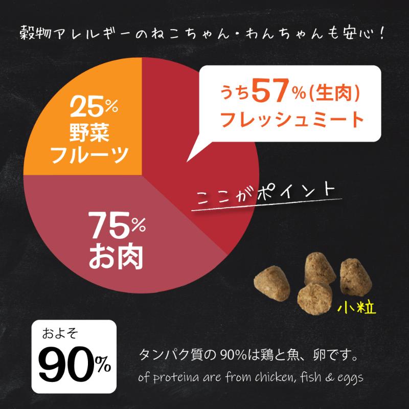 穀物を一切使用していないオーブンベーキング製法のナチュラルホリスティックフードです。