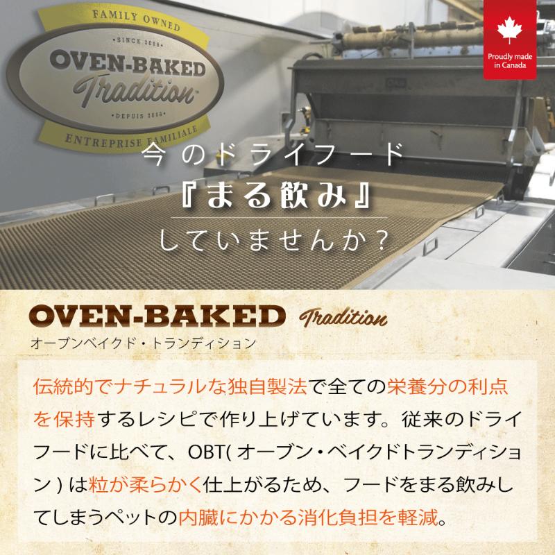 オーブンベークドトラディション(※以下OBT)は従来のドライフードの製造にかかる時間の、実に10倍の時間をかけて丹念に調理されています。