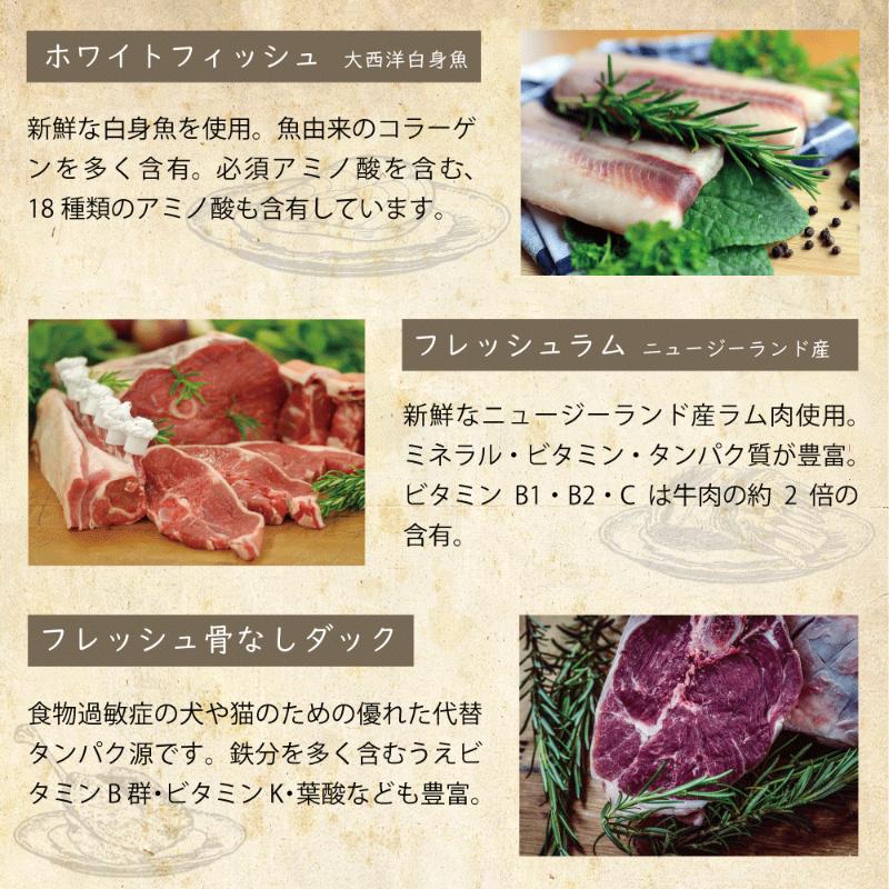 | 素材 | <原材料> フィッシュ(フレッシュフィッシュ20.0%、ディハイドレイテッドニシン16.9%)、ライ麦、レンズ豆、大麦、オートミール、キャノーラオイル、亜麻仁、サツマイモ、海塩、イヌリン、グルコサミン塩酸塩、コンドロイチン硫酸、ホウレンソウ、リンゴ、バナナ、ブルーベリー、ブロッコリー、クランベリー、藻類、ユッカシジゲラエキス、ローズマリーエキス 【栄養添加物/kg】 ビタミン類:ビタミンA(酢酸レチニル)4,000 IU、ビタミンD3(コレカルシフェロール)400 IU、ビタミンE100 mg、タウリン1,000 mg 微量ミネラル類:鉄(アミノ酸キレート)63.36 mg、亜鉛(アミノ酸キレート)72 mg、マンガン(アミノ酸キレート)5.18 mg、銅(アミノ酸キレート)8.93 mg、セレン(亜セレン酸ナトリウム)0.0025 mg、ヨウ素(無水ヨウ素酸カルシウム)0.717 mg 【技術的添加物】 酸化防止剤:ミックストコフェロール、クエン酸 <保証成分> 粗タンパク質 25.0%以上、粗脂肪 14.0%以上、粗繊維 4.0%以下、粗灰分 7.5%以下、水分 10.0%以下 カルシウム 0.8%以上、リン 0.55%以上、カリウム 0.7%以上、ナトリウム 0.35%以上、オメガ6:2.85%以上、オメガ3:1.5%以上、グルコサミン:450mg/kg以上、コンドロイチン:350mg/kg以上br> <エネルギー> 354.7kcal/100g |