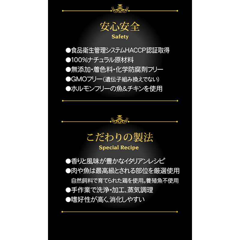 消化しやすく、水分も摂りやすい。ビタミンやミネラルを多く含んだ栄養価の高いウエットフード。