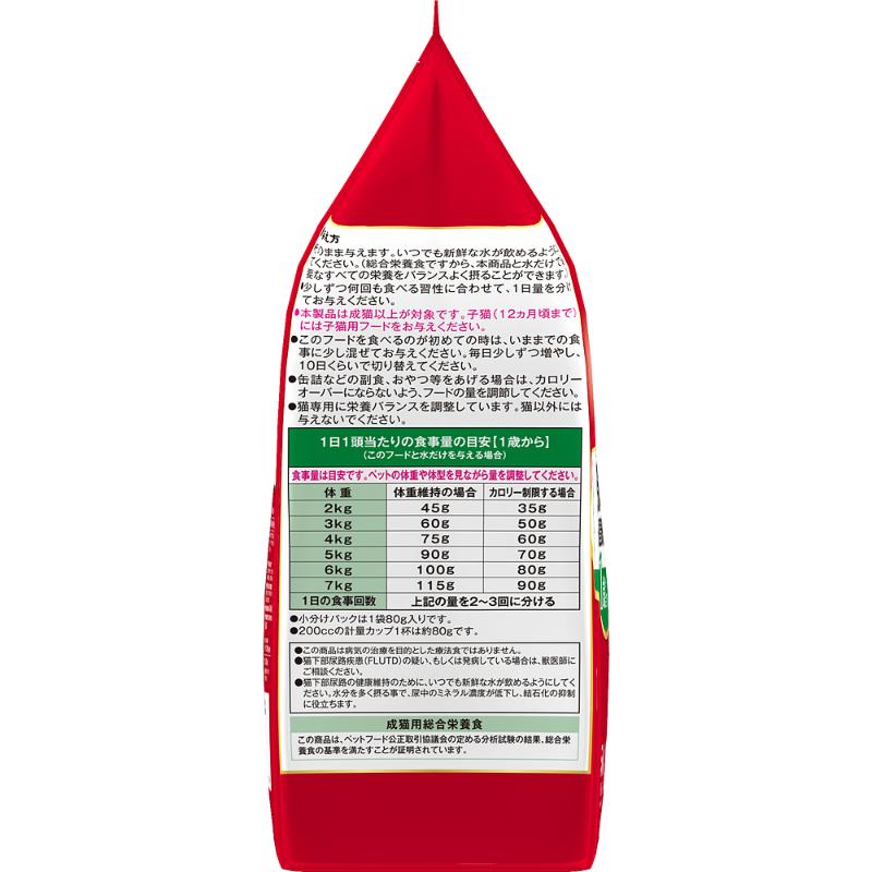 マグネシウム由来のストルバイト結石の形成に配慮。さらにメチオニンを強化(成猫用比約20%アップ)