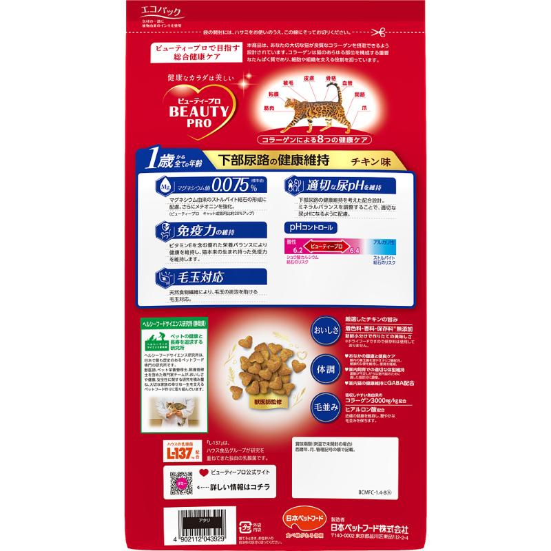 [日本ペットフード(直送)]ビューティープロ キャット 下部尿路の健康維持 1歳から チキン味 1.4kg(280g×5袋) ※メーカー直送 ※発注単位・最低発注数量(混載30ケース以上)にご注意下さい【11月特価】
