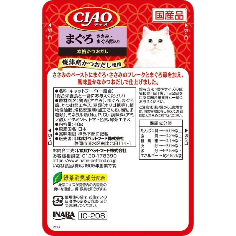 [いなばペットフード(直送)]CIAO パウチ まぐろ ささみ・まぐろ節入り 40g【メーカーフェア5】