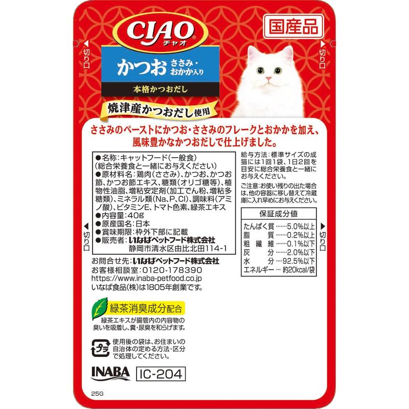 [いなばペットフード(直送)]CIAO パウチ かつお ささみ・おかか入り 40g【メーカーフェア5】