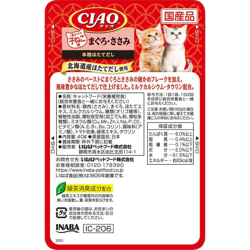 [いなばペットフード(直送)]CIAO パウチ 1歳までの子ねこ用 まぐろ・ささみ 40g【メーカーフェア5】