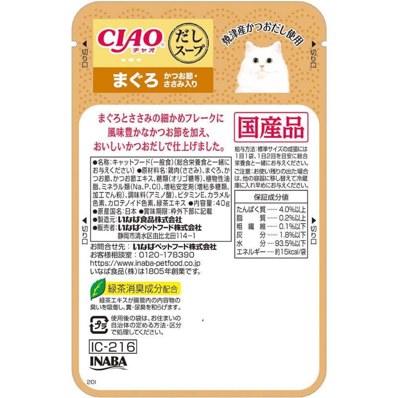 [いなばペットフード(直送)]CIAO だしスープ まぐろ かつお節・ささみ入り 40g ※メーカー直送 ※発注単位・最低発注数量(混載50ケース以上)にご注意下さい【メーカーフェア5】