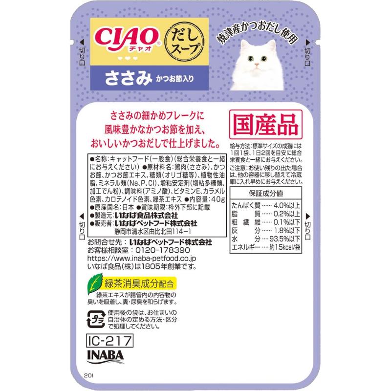 [いなばペットフード(直送)]CIAO だしスープ ささみ かつお節入り 40g ※メーカー直送 ※発注単位・最低発注数量(混載50ケース以上)にご注意下さい【メーカーフェア5】
