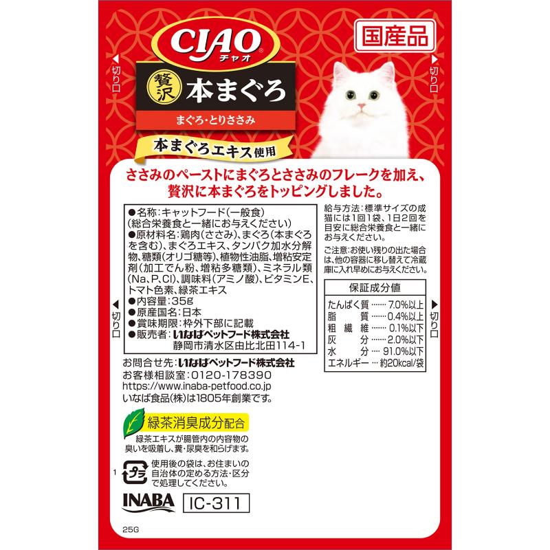 [いなばペットフード(直送)]CIAO パウチ 贅沢 本まぐろ まぐろ・とりささみ 35g ※メーカー直送 ※発注単位・最低発注数量(混載50ケース以上)にご注意下さい【メーカーフェア5】