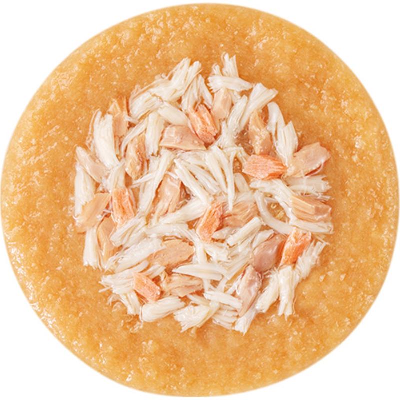 | 素材 | <原材料> 鶏肉(ささみ)、まぐろ、キングサーモン、紅鮭、鮭エキス、タンパク加水分解物、糖類(オリゴ糖等)、植物性油脂、増粘安定剤(加工でん粉、増粘多糖類)、ミネラル類(Na、P、Cl)、調味料(アミノ酸)、ビタミンE、トマト色素、緑茶エキス <保証成分> たんぱく質7.0%以上、脂質0.4%以上、粗繊維0.1%以下、灰分2.0%以下、水分91.0%以下 <エネルギー> 約20kcal/袋 |