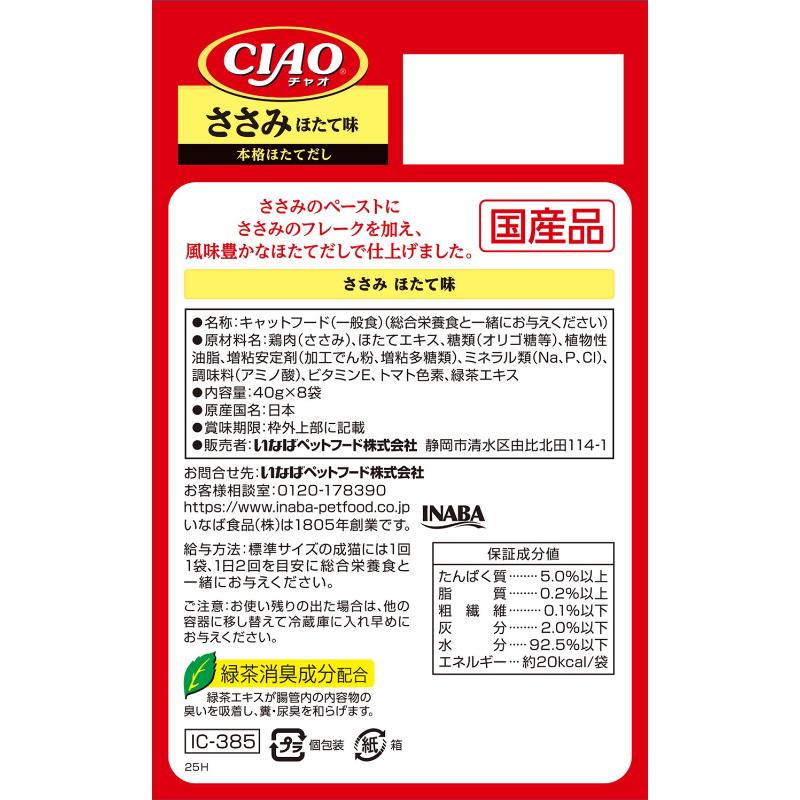 [いなばペットフード(直送)]CIAO パウチ ささみ ほたて味 40g×8袋
