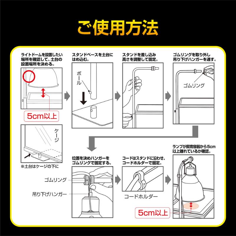 | 注意事項 | ・本製品はライトドーム専用の吊り下げスタンドです。他の目的には使用しないでください。 ※製品の仕様、デザイン、価格等予告なく変更することがあります。 |