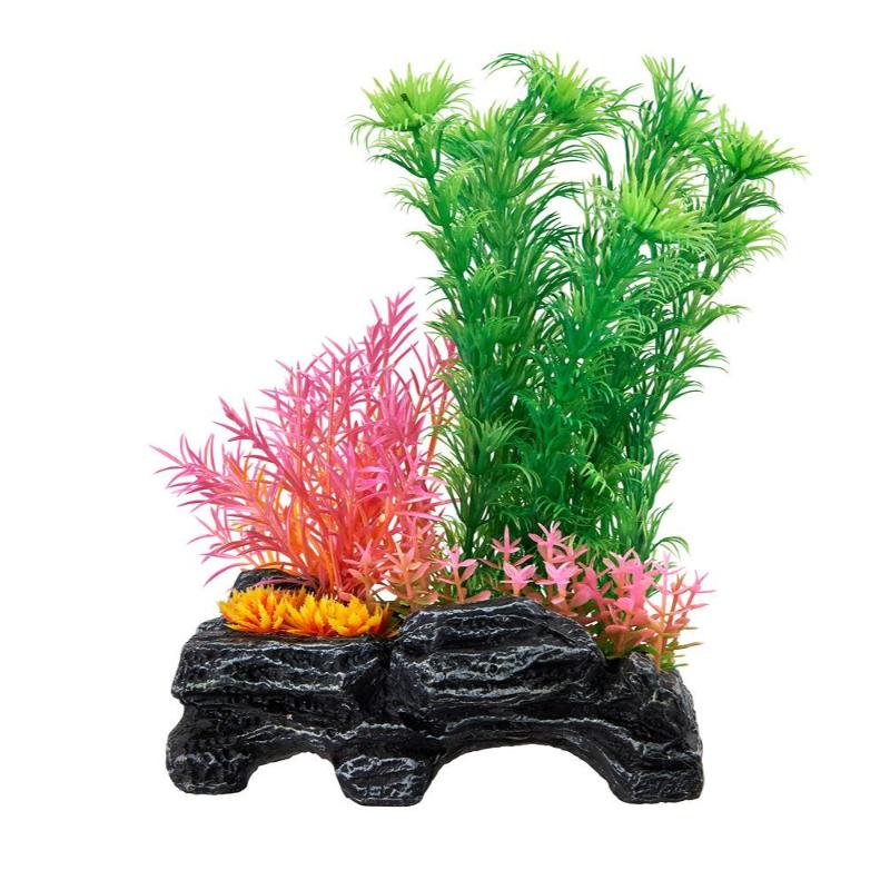 陶器製の岩に水槽をミックス。水槽に置くだけで自然な風景を演出できます。