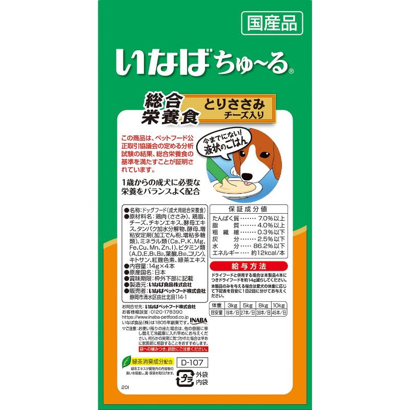 [いなばペットフード(直送)]いなば ちゅ~る 総合栄養食 とりささみ チーズ入り 14g×4本 ※メーカー直送 ※発注単位・最低発注数量(混載50ケース以上)にご注意下さい【メーカーフェア5】