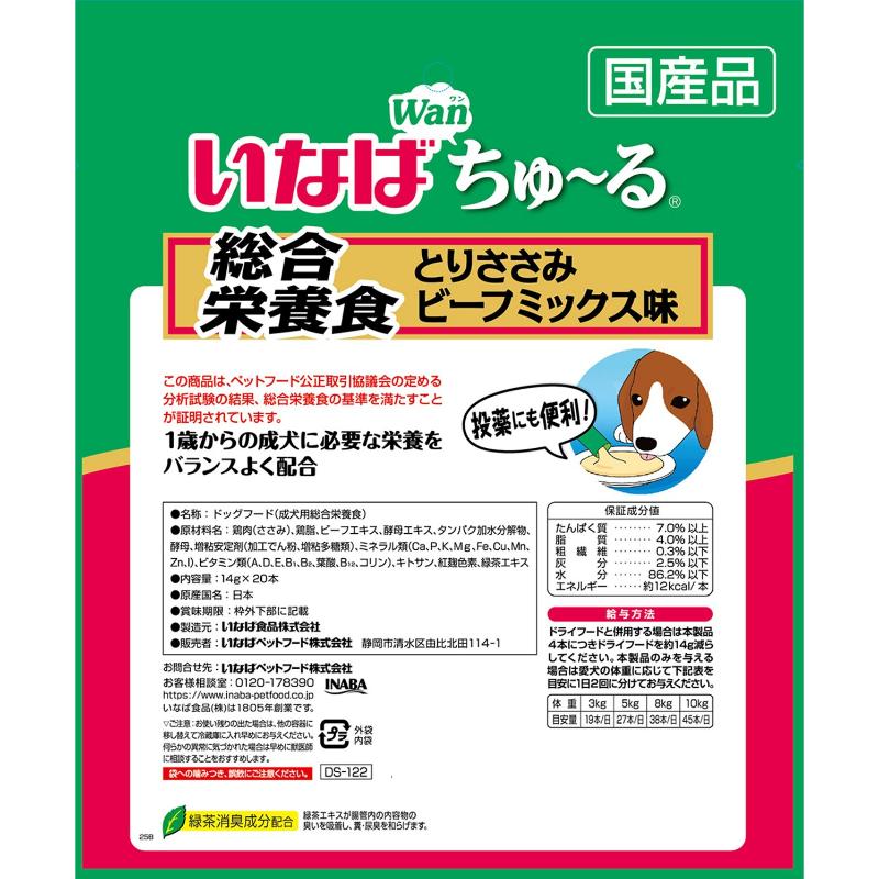 [いなばペットフード(直送)]いなば ちゅ~る 総合栄養食 とりささみ ビーフミックス味 14g×20本 ※メーカー直送 ※発注単位・最低発注数量(混載50ケース以上)にご注意下さい【メーカーフェア5】