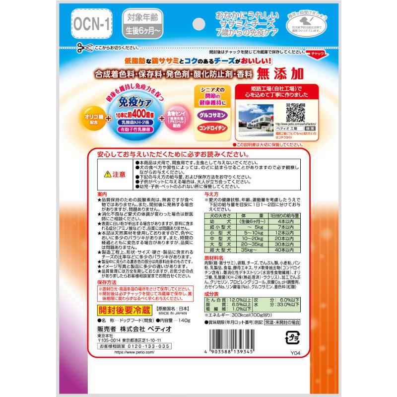 [ペティオ]おなかにうれしい 無添加 ササミとチーズ 7歳からの健康ケア 140g