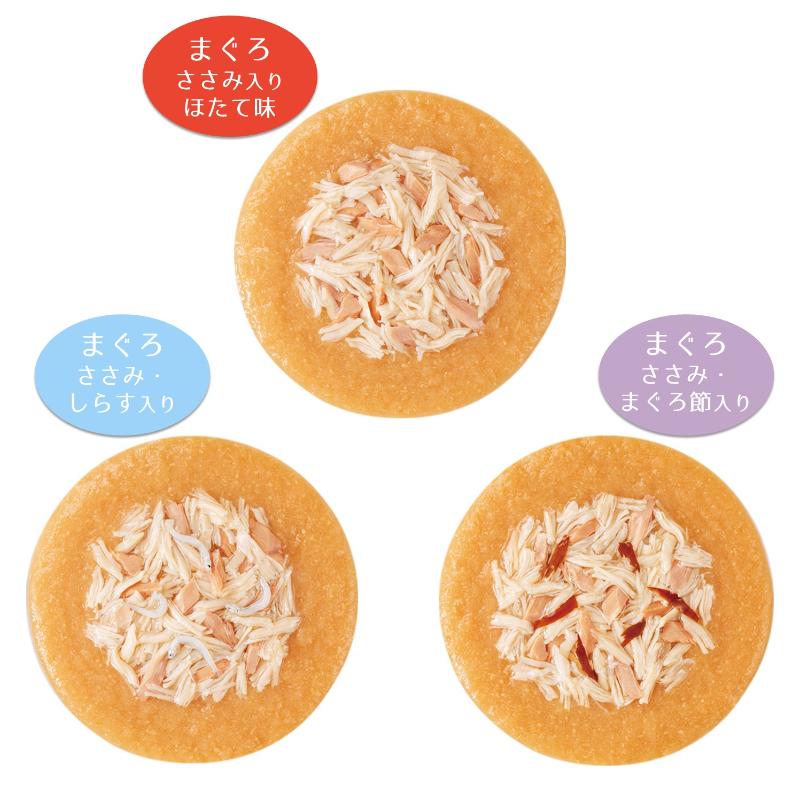 | 素材 | <原材料> 【まぐろ ささみ・しらす入り】 鶏肉(ささみ)、まぐろ、しらす、かつお節エキス、糖類(オリゴ糖等)、植物性油脂、増粘安定剤(加工でん粉、増粘多糖類)、ミネラル類(Na、P、Cl)、調味料(アミノ酸)、ビタミンE、トマト色素、緑茶エキス 【まぐろ ささみ入り ほたて味】 鶏肉(ささみ)、まぐろ、ほたてエキス、糖類(オリゴ糖等)、植物性油脂、増粘安定剤(加工でん粉、増粘多糖類)、ミネラル類(Na、P、Cl)、調味料(アミノ酸)、ビタミンE、トマト色素、緑茶エキス 【まぐろ ささみ まぐろ節入り】 鶏肉(ささみ)、まぐろ、まぐろ節、かつお節エキス、糖類(オリゴ糖等)、植物性油脂、増粘安定剤(加工でん粉、増粘多糖類)、ミネラル類(Na、P、Cl)、調味料(アミノ酸)、ビタミンE、トマト色素、緑茶エキス <保証成分> たんぱく質5.0%以上、脂質0.2%以上、粗繊維0.1%以下、灰分2.0%以下、水分92.5%以下 <エネルギー> 約20kcal/袋 |