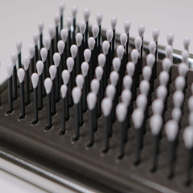 クッション性のあるやわらか樹脂製先丸ピンが抜け毛を取り去る
