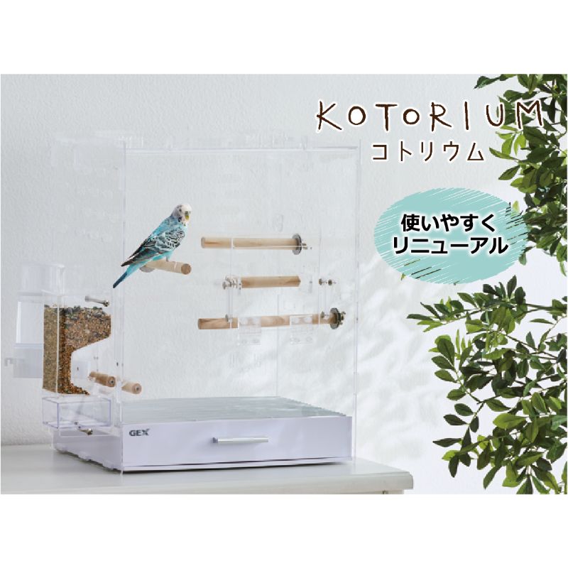 | 注意事項 | ・アクリルには紫外線をカットする性質があるため、日光浴は金属製等のケージに移して行ってください。 ・アクリル板はまれに変色が起きる場合がありますので、直射日光に当てないでください。 ・本製品は安定して自分でエサを食べるようになった、しっかりした体格の健康な小鳥を対象に設計されています。 ・廃棄する場合は、各自治体の廃棄ルールに従ってください。 |