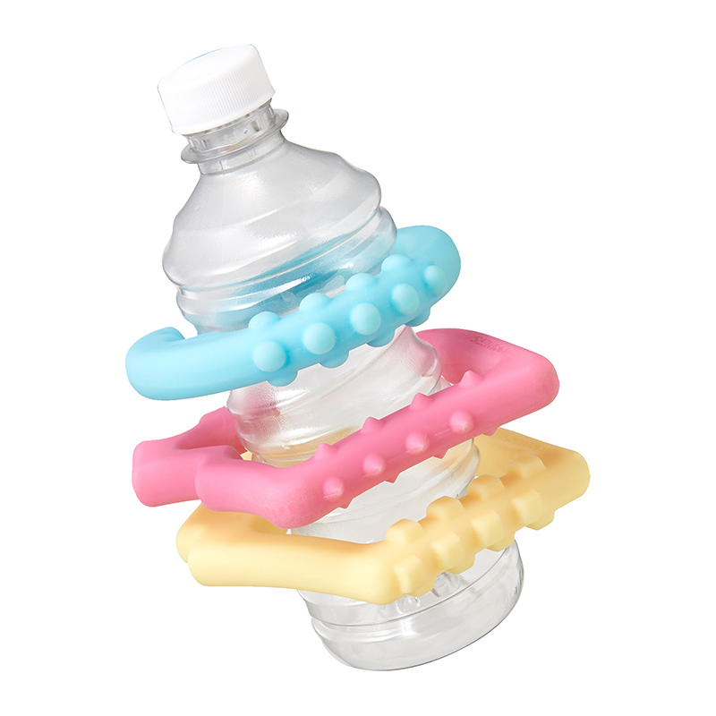 小型犬や仔犬でも咥えやすいサイズ。凹凸を噛むことで歯磨き効果・ミルクの香り付き。いろんなモノと組み合わせてオリジナルのおもちゃが作れる。ちぎれにくい天然ゴムを使用。