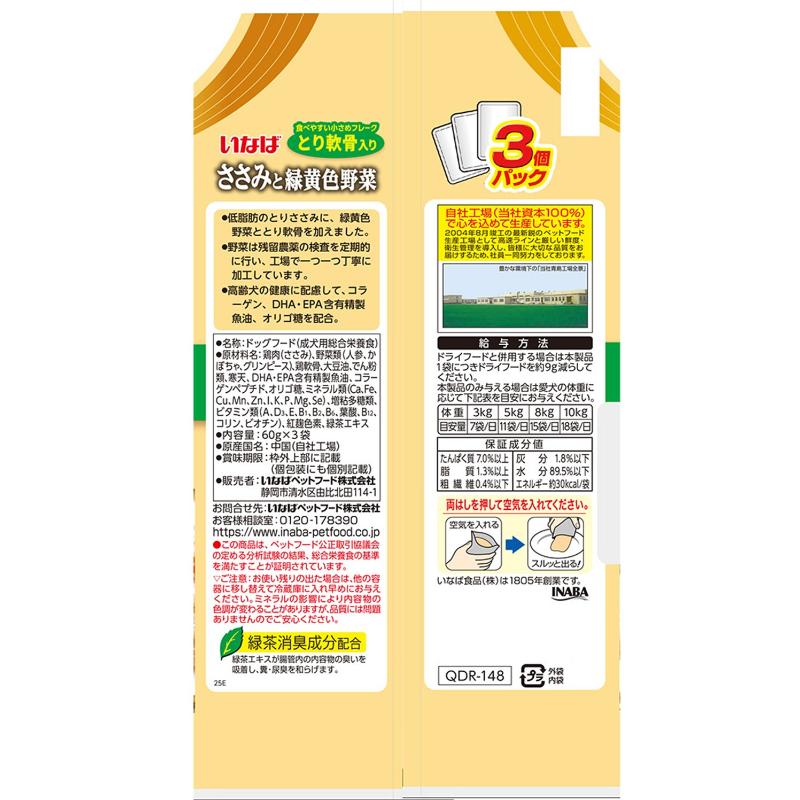 [いなばペットフード]いなば ささみと緑黄色野菜 11歳からのとり軟骨入り 60g×3袋【メーカーフェア10】