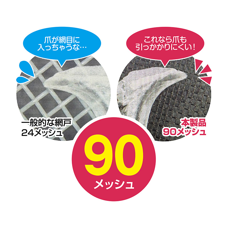 ・ペットの爪先より細かいメッシュでよじ登りを防止し、網戸の破れを防ぎます。