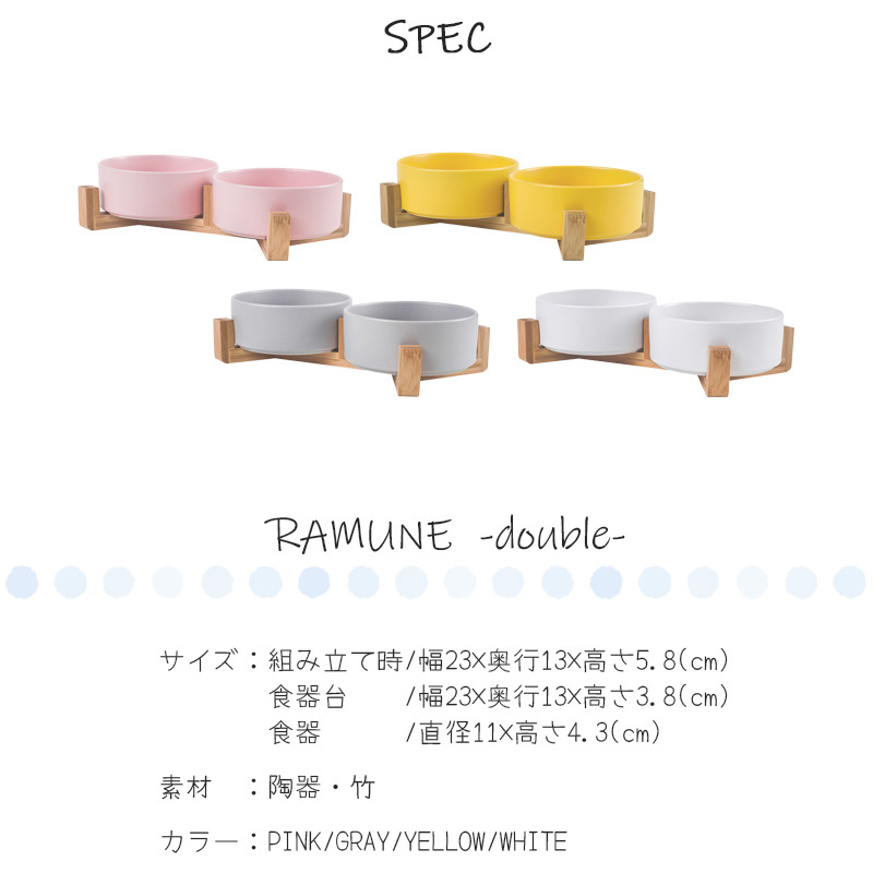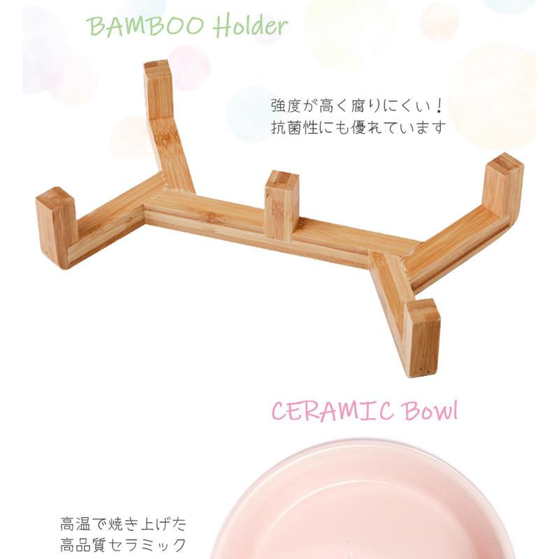 ・かわいいバンブーホルダー付きセラミックボウルのダブルタイプ。