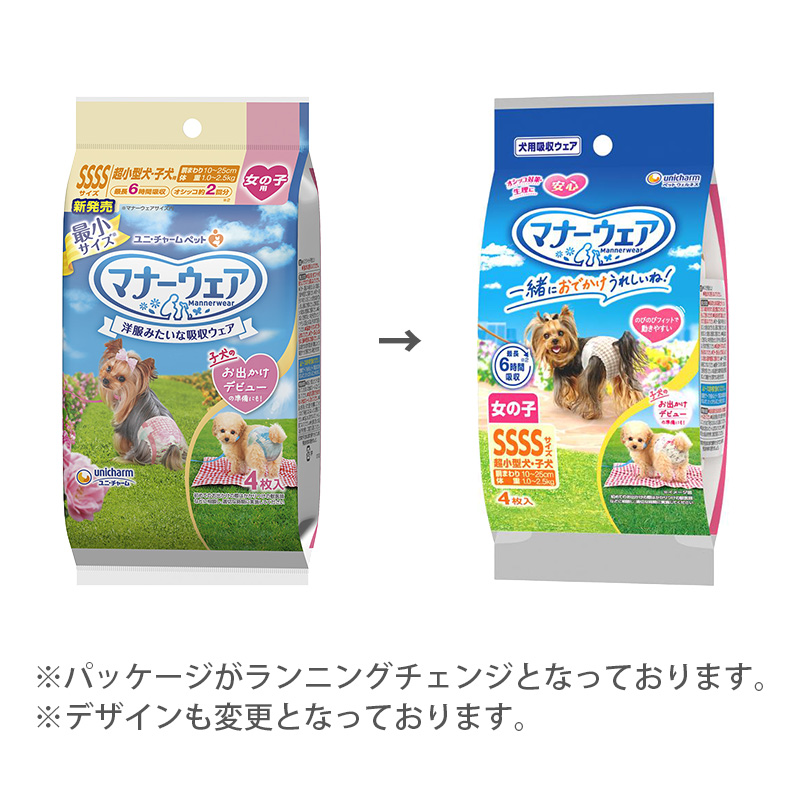 [ユニ・チャーム] マナーウェア 女の子用 SSSSサイズ 2種のデザインパック 4枚入