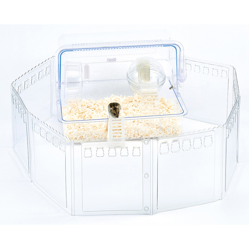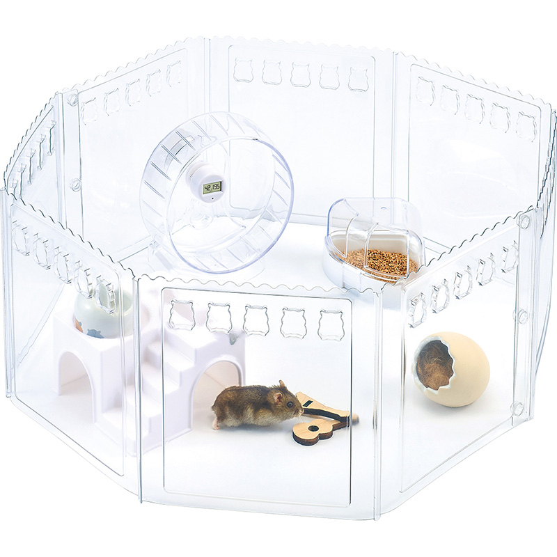 | 注意事項 | ・本品はハムスターなどの小動物専用です。他の目的には使用しないでください。 ・必ず、平らで安定した場所で設置してください。 ・本品は樹脂製品ですので、成形上、波打ちや線状の痕跡が見られる場合があります。ご了承ください。 ・ペットが樹脂をかじったり、接続箇所の凹凸部にゆるみや破損が出た場合、使用を中止してください。 ・本品に強い衝撃を与えると破損する場合がありますので丁寧にご使用ください。 ・火気や暖房器具のそばに置かないでください。火災やペットの火傷、商品の変形の原因になります。 ・使用中m本品の消耗状態をよく観察し、ヒビ割れや樹脂の劣化、変形などが見られた場合は使用を中止し新しいものと交換してください。 ・ペットの大きさや行動によっては偶発的に身体の一部がすき間に挟まってしまう可能性がありますので、常に目を離さずに使用してください。 |