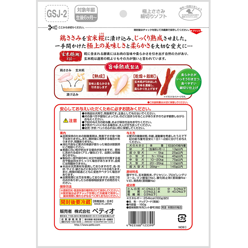 [ペティオ(直送)]極上ささみ 細切りソフト 150g ※メーカー直送 ※発注単位・最低発注数量(納価合計:税抜7万円以上)にご注意下さい