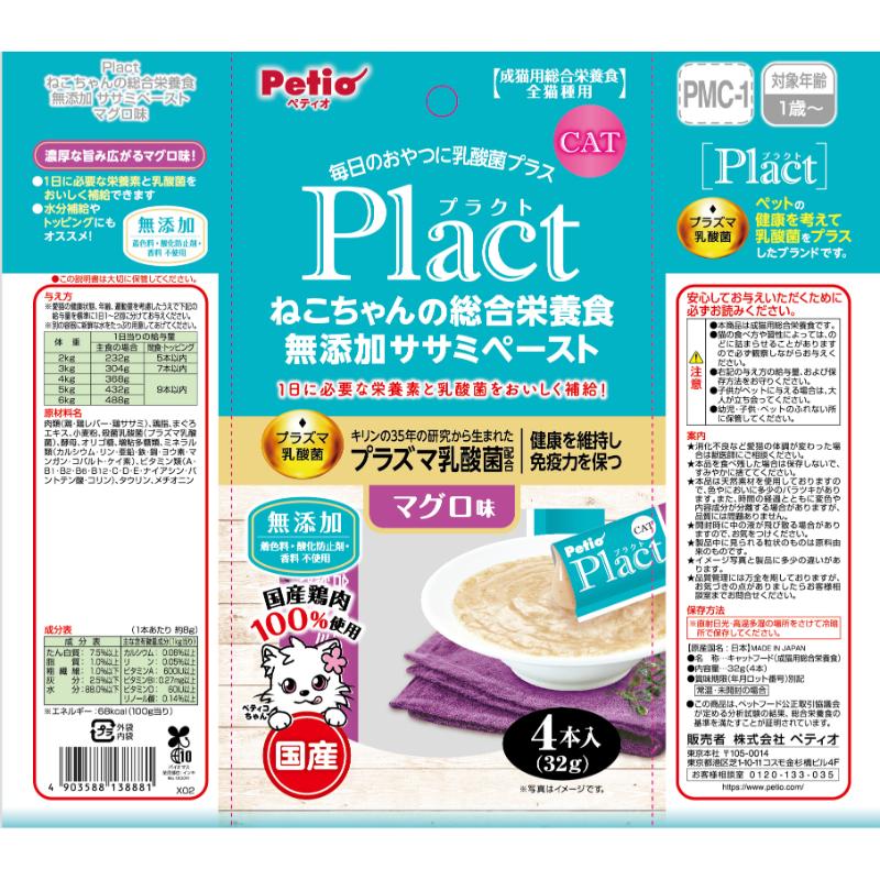 ・Plactはペットの健康を考えて乳酸菌をプラスしたブランドです。1日に必要な栄養素と乳酸菌をおいしく補給できます。
