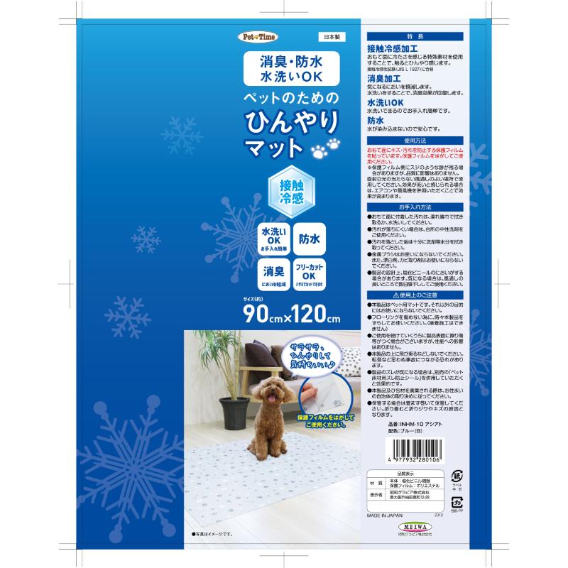 [明和グラビア]ひんやりペットマットINHM-10 足跡 ブルー 90×120cm