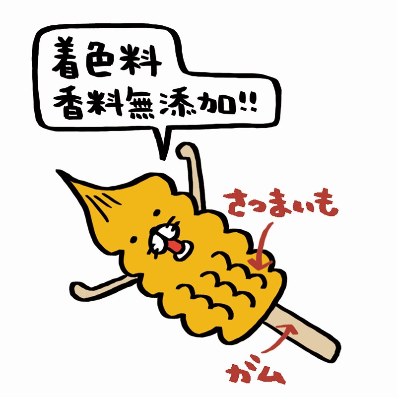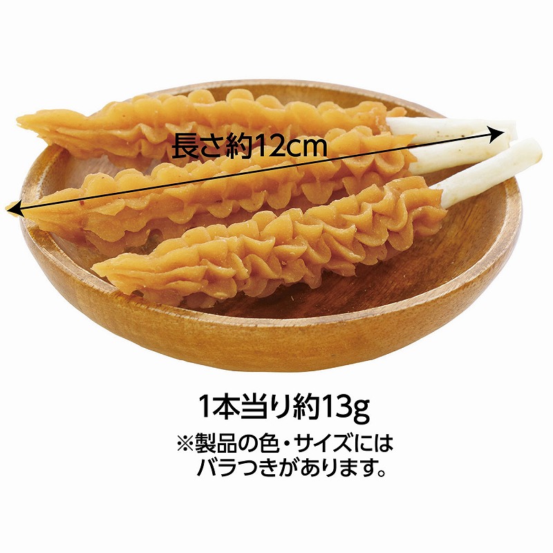 | 素材 | <原材料> さつまいも、牛皮、加工でんぷん、グリセリン <保証成分> たん白質3.0%以上、脂質0.5%以上、粗繊維1.0%以下、灰分3.0%以下、水分23.0%以下 <エネルギー> 316kcal/100g |