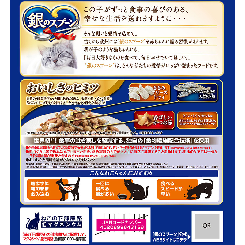[ユニ・チャーム]銀のスプーン 贅沢素材バラエティ 食事の吐き戻し軽減フードささみ・まぐろ・かつお味 1.0kg