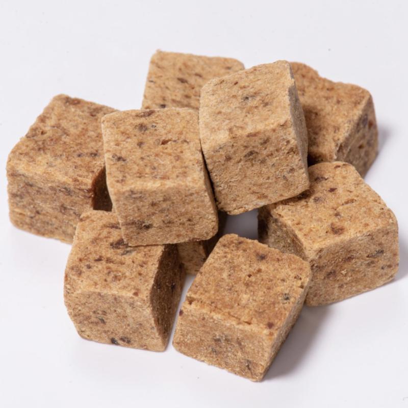 ・主原料はマグロとカツオだけを使用し、凝縮された豊かな香りと味わいをキューブ形状にギュッと凝縮した、与えやすい食べきりタイプのスナックです。