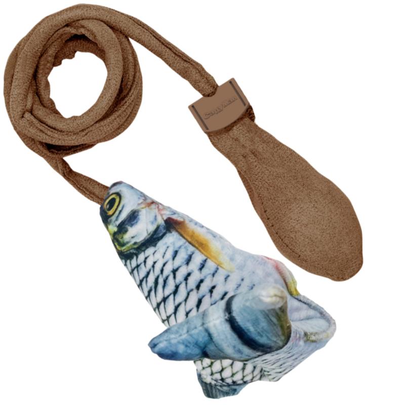 ・ポンプを握って空気で動く、さかなモチーフの猫玩具です。