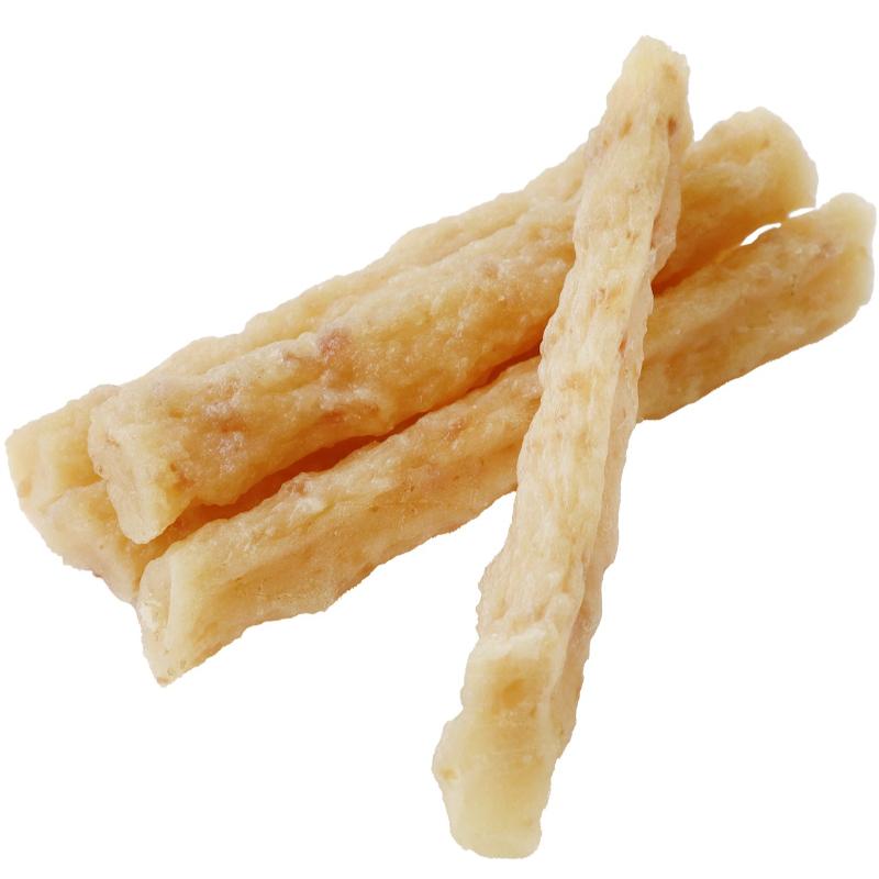 素材 | <原材料> 鶏肉(胸肉、軟骨、トサカ)、魚肉(白身魚、軟骨)、小麦粉、コーンスターチ、タピオカ加工でん粉、ソルビトール、pH調整剤、食塩、リン酸塩(Na)、調味料 <保証成分> たんぱく質11.0%以上、脂質4.5%以上、粗繊維0.5%以下、灰分3.0%以下、水分19.0%以下 <エネルギー> 320kcal/100g |